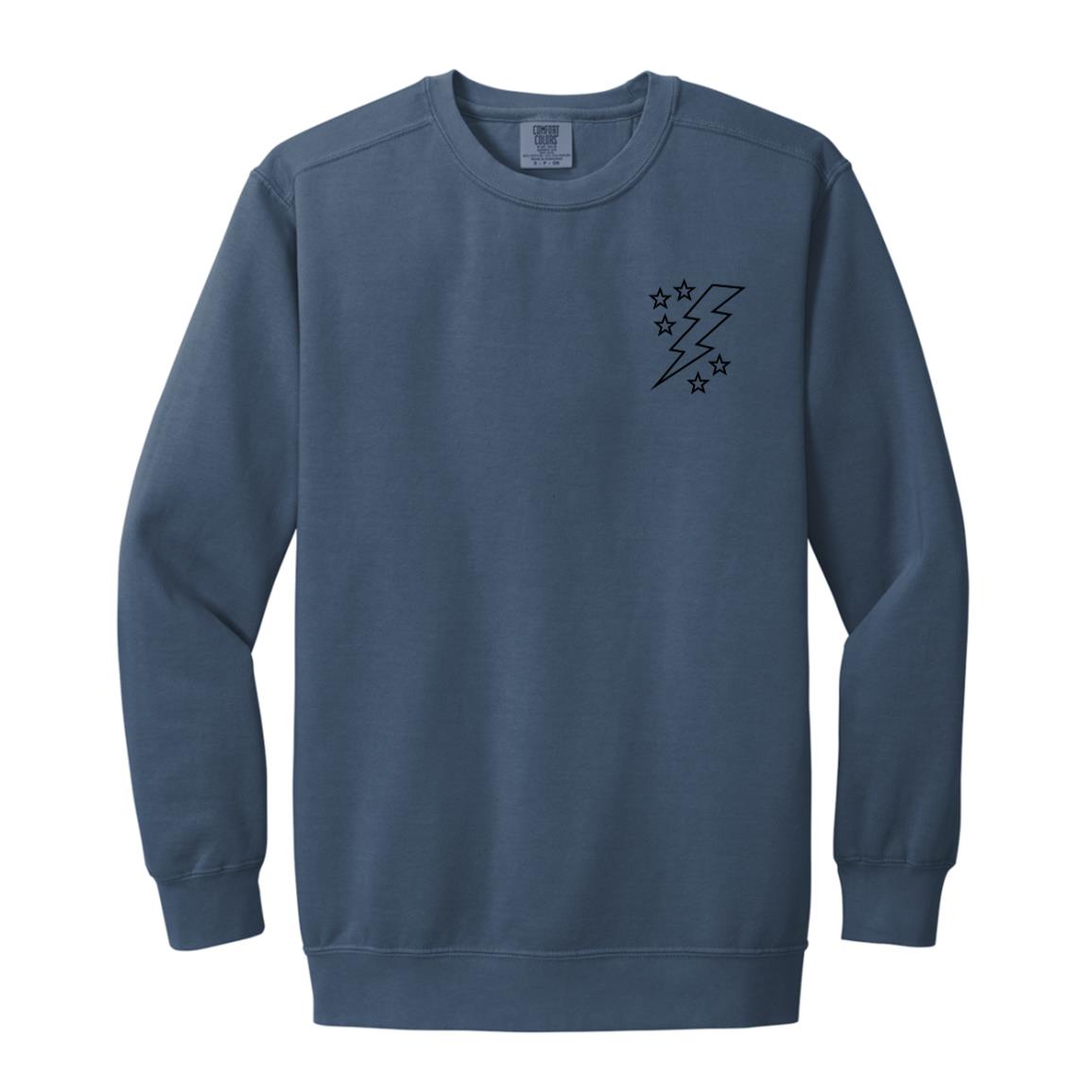 Lightening Bolt Outline Black Pocket Garment-Dyed Adult Crewneck Sweatshirt